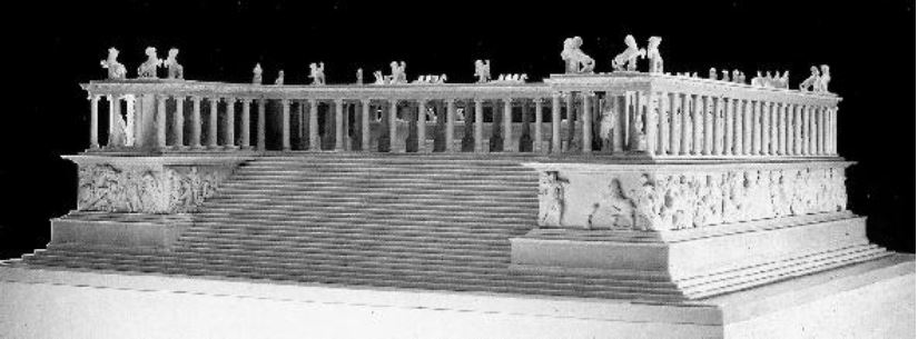 Der Pergamonaltar steht in der Tradition anderer ionischer Altarbauten, steigert deren Aufbau jedoch ins Monumentale, ja Riesenhafte. Eine Besonderheit ist das Skulpturenprogramm, dem in der Antike nur wenig Gleichrangiges gegenübergestanden haben dürfte (z.B. der plastische Schmuck des Parthenon). Die Friese und auch die freiplastischen Figurenansammlungen sind lesbar. Je nachdem, mit welchen Bereichen des Skulpturenschmucks sich der Betrachter befaßt, erscheint das Monument als Siegesmal eines hellenistischen Fürsten, als dynastisches Denkmal oder auch als Schaubild des ganzen Reiches mit seiner Vielzahl von Städten, deren Personifikationen auf die herrschende Tryphe (Fülle) und damit auch auf das gute Regime der Attaliden hinweisen.