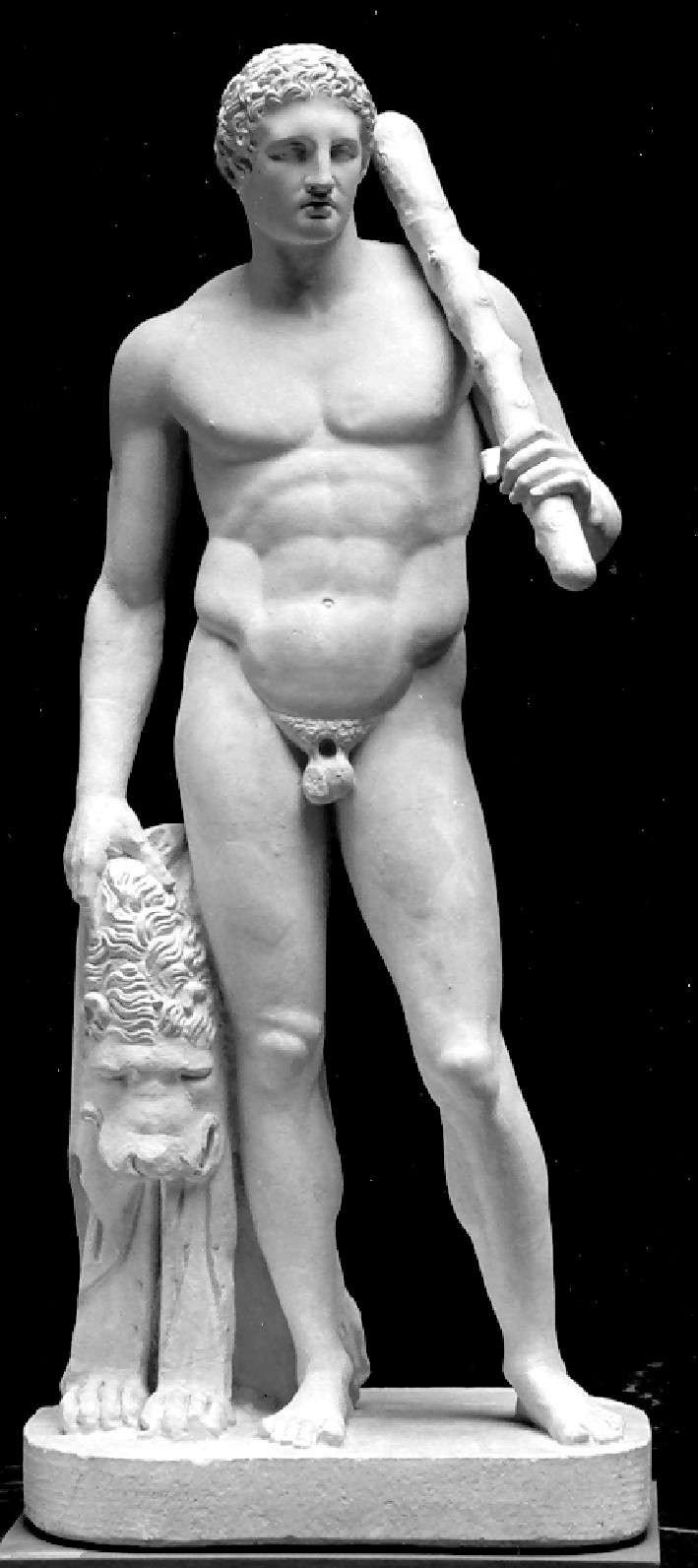 Dem Bildhauer kam es vor allem auf die Vorführung eines athletischen Körpers an. Die Kennzeichen für Herakles werden fast nebensächlich hinzugefügt. Eine ganz andere Auffassung dieses Gottes begegnet uns im Herakles Farnese des späten 4. Jhs., der sich mit seinem äußerst muskulösen Körper schwer lastend auf seine Keule stützt und damit in sehr eindrücklicher Weise das Ausruhen nach großen Mühen vermittelt.